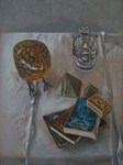 2007Stilleven met ibis een brandende olielamp en boeken over Atlantis