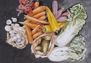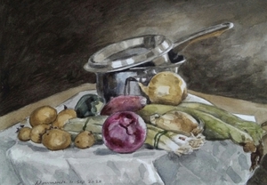 2022Aquarel van keukenstuk met groente