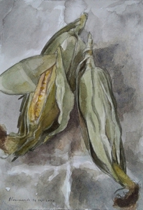 2020Aquarel met twee maïskolven