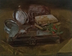 2020Stilleven met boek, granaatappel, klimop en bril