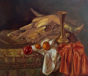 2020Olieverfschilderij met stierenschedel