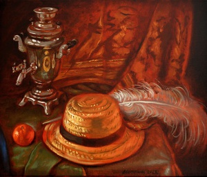 2022Stilleven met samowar en strohoed