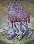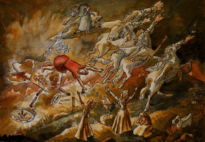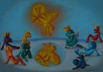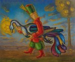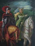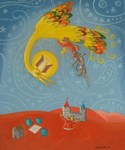 2011Schilderij naar het Russische sprookje van Iwan en de vuurvogel, waarin Iwan de vuurvogel naar de boze tsaar brengt, maar later de tsaar overwint en de vuurvogel bevrijdt