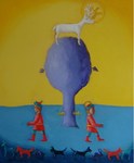 2012Schilderij naar het sprookje van Het Witte Hert uit Letland, waarin twee broers ieder een andere kant opgaan, maar de een de ander ten slotte redt