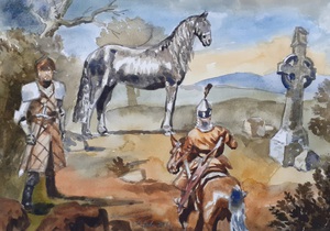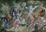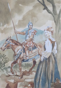 2023Aquarel van Gawan en Orgeluse uit de Parzival van Wolfram von Eschenbach