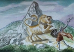 2019Peredur, zoon van Evrawg, verslaat de leeuw, die de cirkelvallei bewaakt, Mabinogion