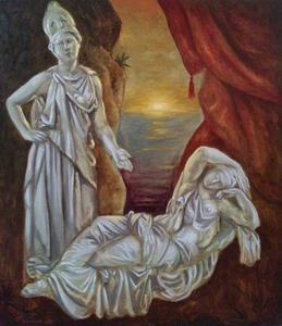 2019Landschap met beelden van de godinnen Pallas Athena en Ariadne