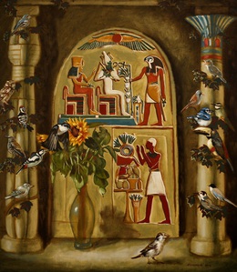 2019Egyptische stèle met zuilen en vogels